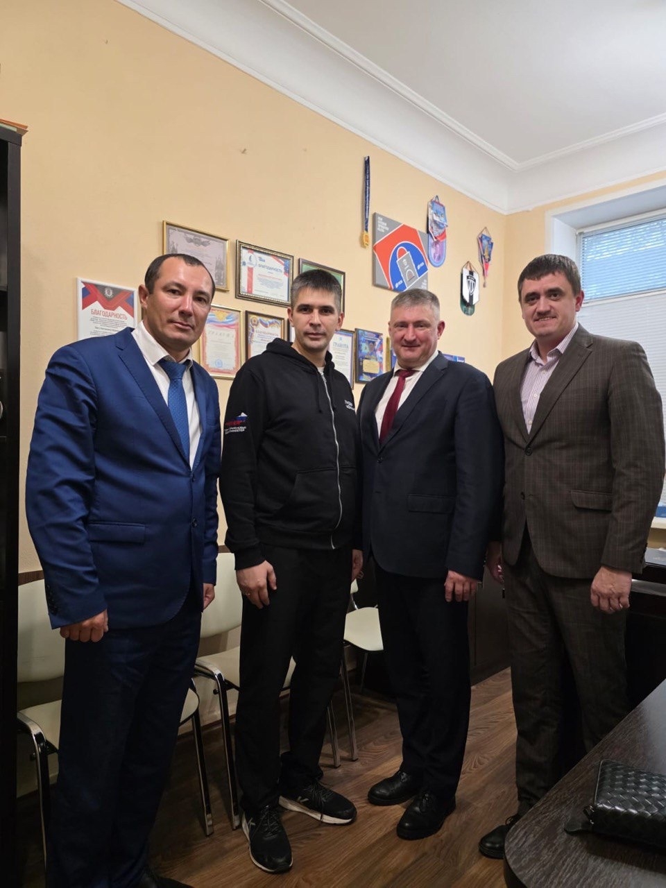 В ходе поездки также состоялась встреча с Министром спорта Луганской Народной Республики Шеренешевым Олегом Викторовичем, на которой были обозначены векторы развития и взаимного сотрудничества в подготовке кадров для спортивной отрасли и взаимодействии в различных сферах спорта.