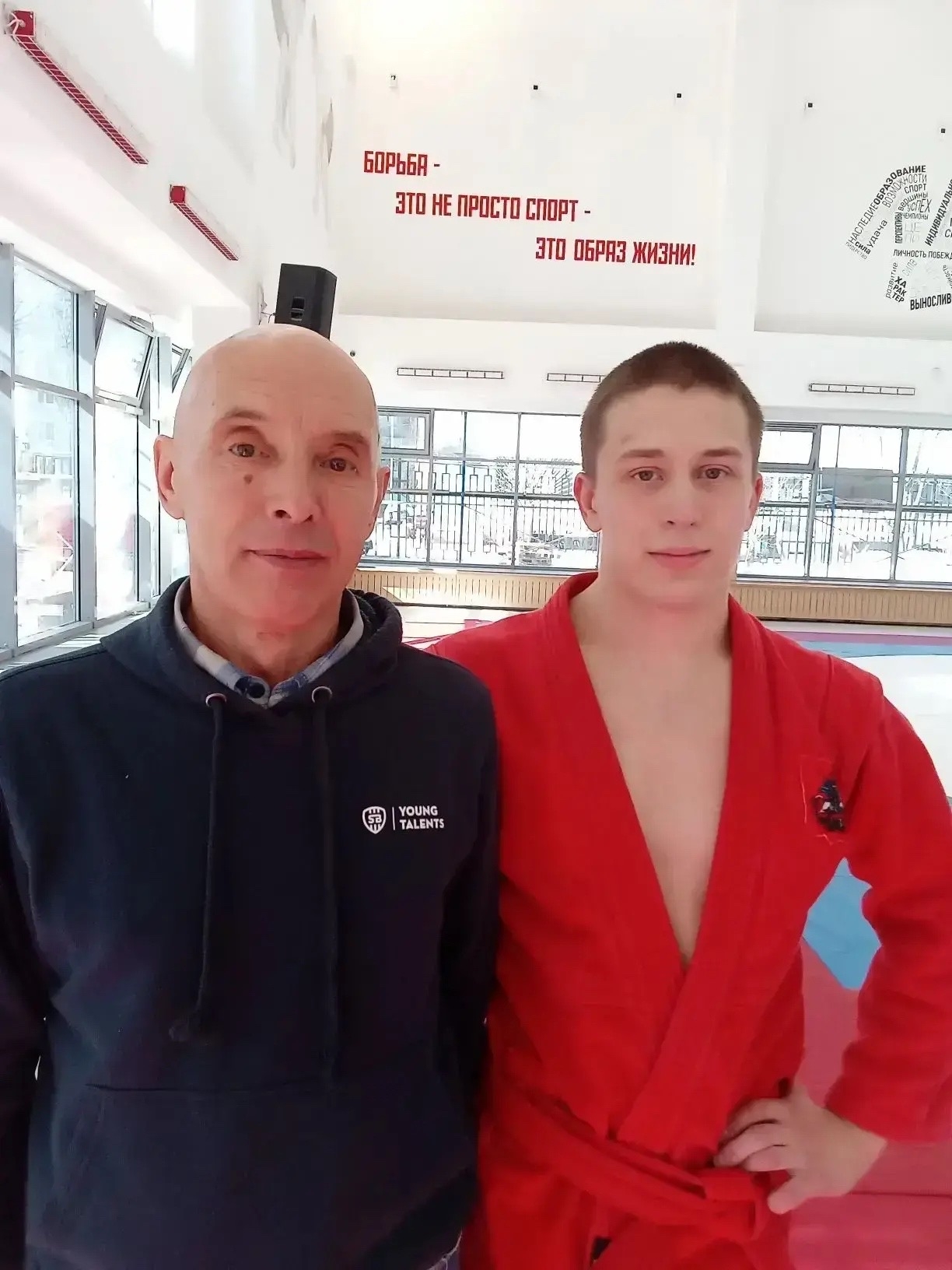 На фото Григорий Петрович с Кучаевым Антоном Юрьевичем, старшим тренером СК «Моя система» мастером спорта России по самбо, мастером спорта России по джиу-джитсу, обладателем черного пояса по бразильскому джиу-джитсу. Также Григорий Петрович сделал фото с Литвиновым Романом, мастером спорта международного класса по САМБО, чемпионом мира 2025 по самбо.