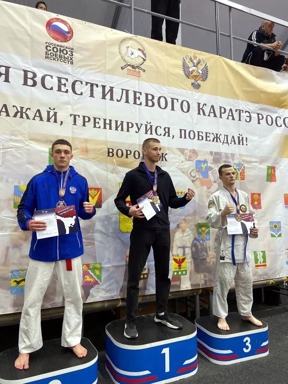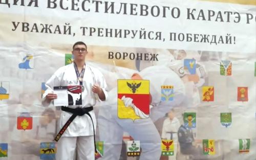 Студент 1 курса 4 группы кафедры ТиМ единоборств ВГАС Глушков Владислав занял 3 место в категории «ОК-ката-ренгокай» среди мужчин 18+ и 2 место в категории мужчины 18+, в категории «ОК», в весовой категории 90 кг