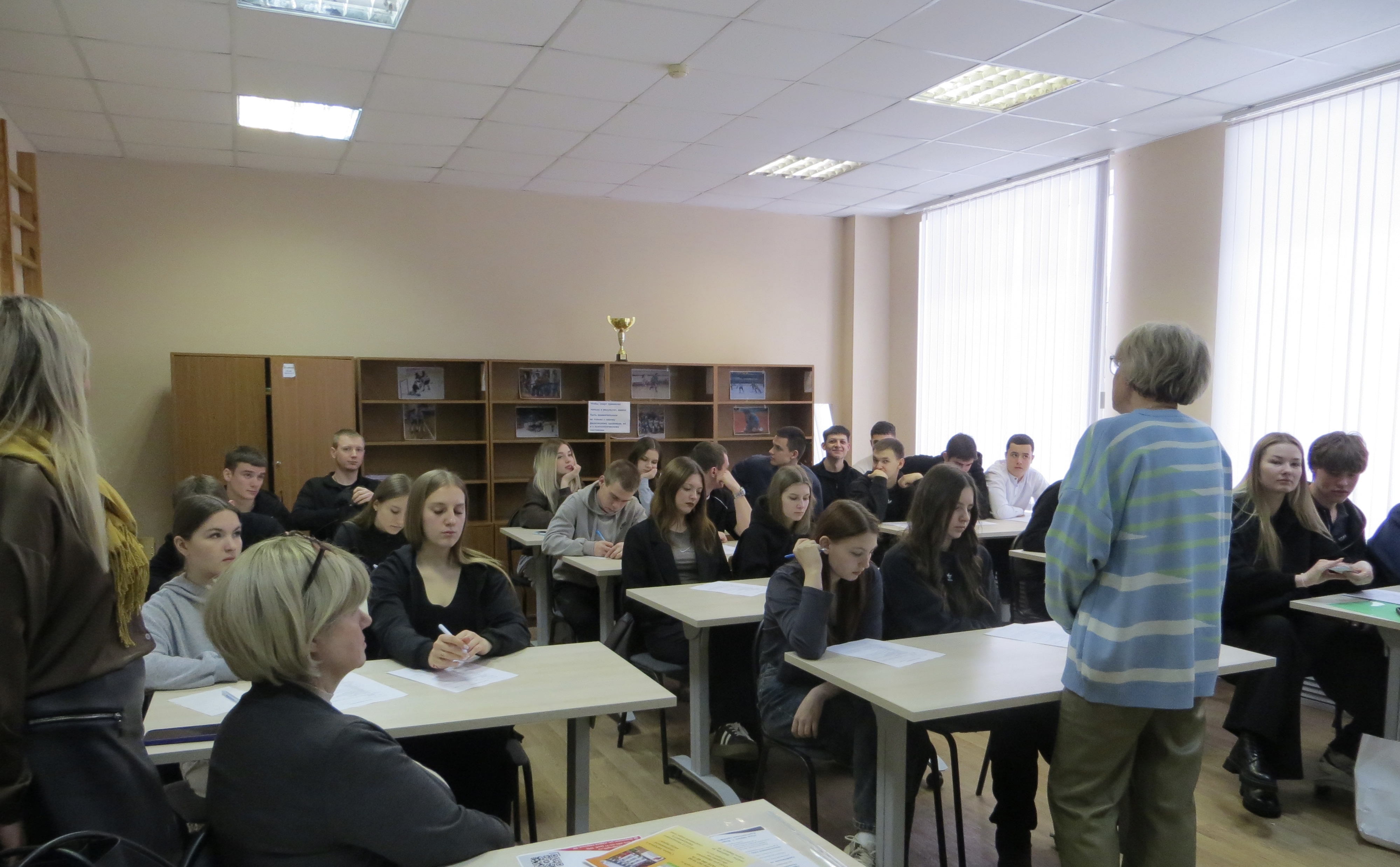 Доцент кафедры МБ, ЕН и МД , к.п.н. Холодов Олег Михайлович, профессор кафедры МБ, ЕН и МД, д.м.н. Попов Сергей Викторович, старший преподаватель кафедры МБ, ЕН и МД Лихачева Валентина Михайловна, доцент кафедры ПИП, к.п.н. Анисимова Вера Владимировна, доцент кафедры ГД,Р и ИЯ, к.п.н. Куликова Татьяна Алексеевна рассказали студентам 3-4 курсов отделения физической культуры о перспективах и возможностях обучения в Воронежской государственной академии спорта. Сотрудники ответили на все интересующие вопросы абитуриентов.
