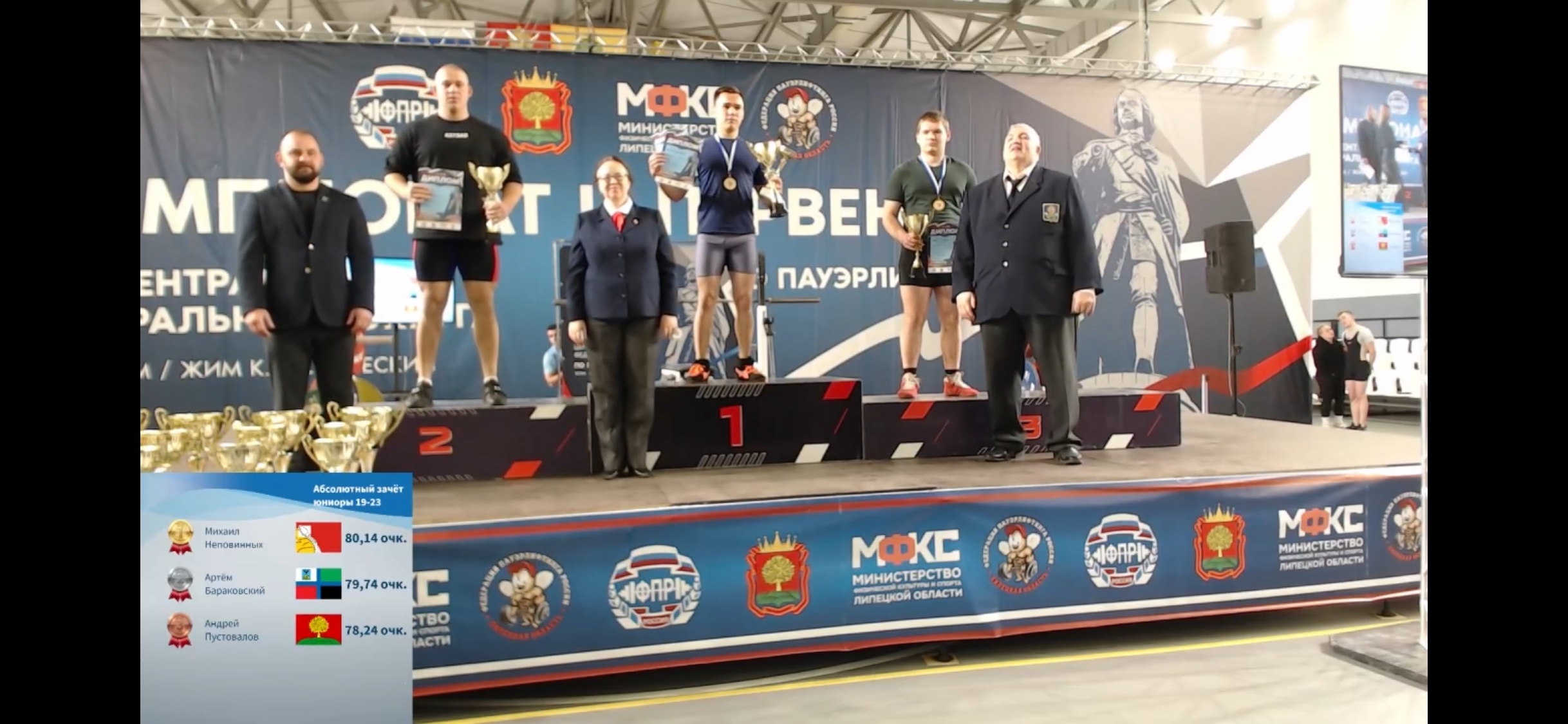 Студент 4 курса тренерского факультета Миша Неповинных пожал 150 кг и стал абсолютным чемпионом ЦФО по классическому жиму штанги лёжа.