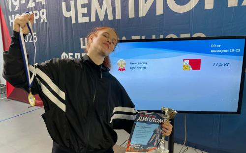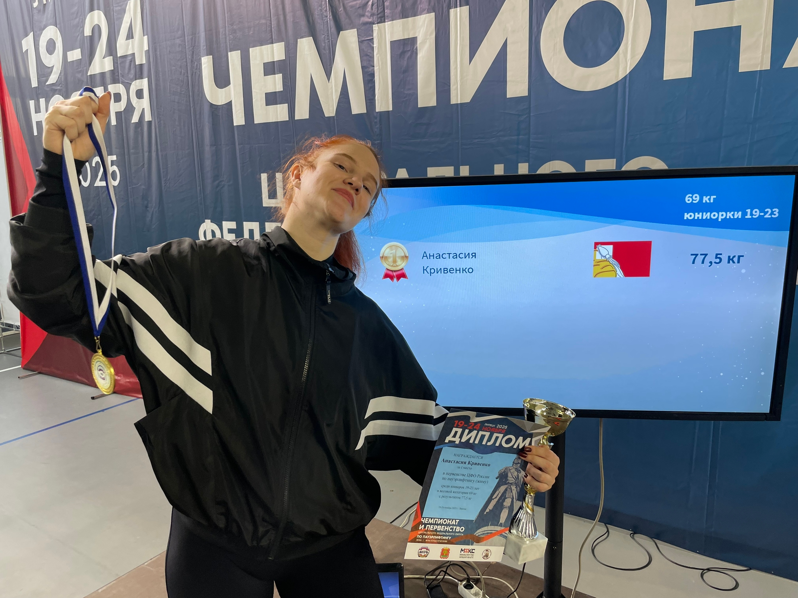 Студентка 4 курса тренерского факультета Анастасия Кривенко пожала 77,5 кг и стала абсолютной чемпионкой ЦФО по жиму штанги лёжа, обновив действующий рекорд Воронежской области по жиму штанги лёжа в весовой категории до 69 кг.