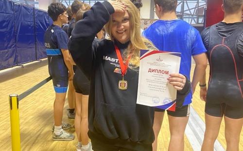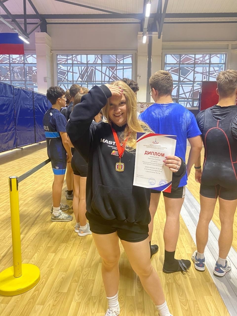Так, студентка факультета СПО ВГАС Грекова Ангелина заняла 1 место в весовой категории до 69 кг и стала абсолютным чемпионом среди девушек 14-18 лет с результатом в жиме лёжа 72,5 кг.