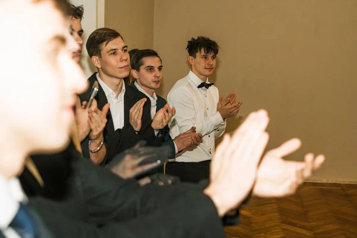 В этот вечер студенческий бал начался с тихого шепота ожидания: в зале замерцали огни, создавая неповторимую атмосферу праздничного волшебства. По залу старинного дома Тулиновых растеклась нежная музыка, в такт её утончённой мелодии пары плавно закружились в танце. Дамы скользили по паркету, словно струны, тихо звучащие в ритм музыке, а кавалеры — уверенно вели партнёрш, даруя им уверенность в каждом движении. Торжество студенческих идей и креатива сделали этот вечер ярким, живым и запоминающимся. Праздник, наполненный красотой, светом и взаимной дружбой нашёл своезавершение. Мы обязательно встретимся снова под светом ярких огней, под шелест платьев с теплотой взаимных улыбок