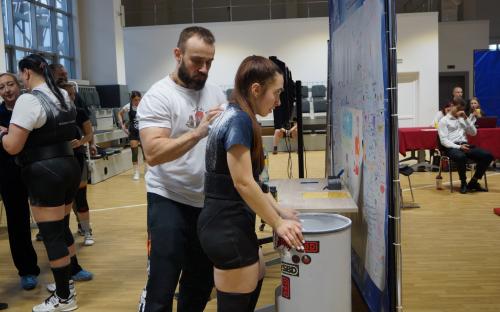 - Студент 2 курса социально-педагогического факультета Николай Максимкин в весовой категории до 83 кг фиксирует приседания 175 кг, жим 117,5 кг и тяга 175 кг, выполняет норматив 1 разряда;