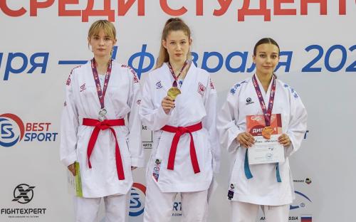 Представительница Воронежской государственной академии спорта уверенно обошла своих соперниц из Орловской и Ростовской областей и поднялась на первую ступень пьедестала почета